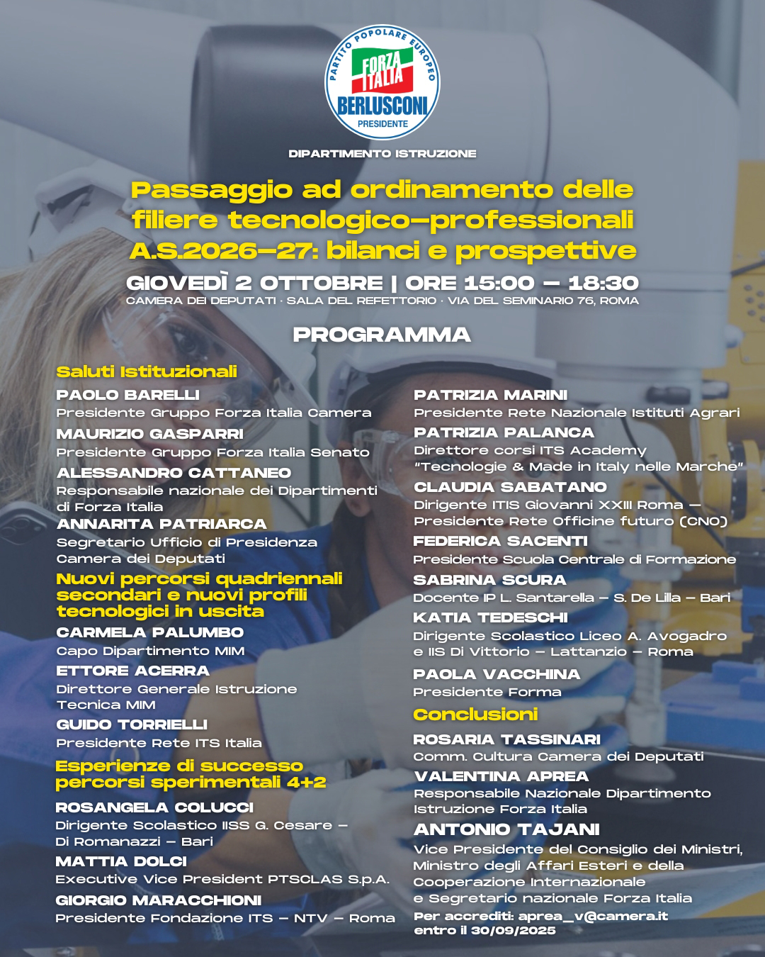Alle ore 15, presso la Sala del Refettorio di Palazzo San Macuto si è svoto il convegno "Passaggio ad ordinamento delle filiere tecnologico-professionali A.S. 2026-27: bilanci e prospettive". Intervento dela Segretaria di presidenza, Annarita Patriarca.